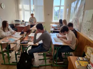 Ярмолінська Аріна МСОнім 02-24 проводить урок. у 10-А класі ( ліцей 53 м. Києва) .